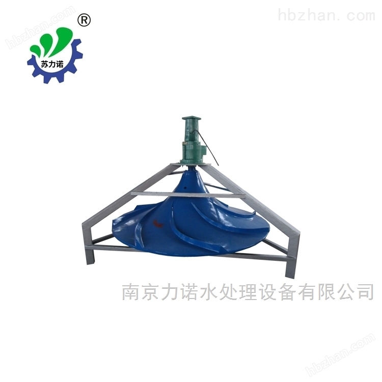 10、 搅拌机轴和叶片具有足够的强度、刚度和耐振性,可保证在各种设计工况下平稳工作,没有异常振动。污水混合干式双曲面搅拌机安装步骤1、桥架应校正水平,半桥架立柱应校正垂直。地脚螺栓及连接部位应坚固可靠。2、将减震座平放在桥架规定位置,校正水平后与桥架连接固定。3、减速电机安装在减震座上,并连接固定。4、将叶轮与搅拌轴法兰用螺栓连接并紧固。5、将叶轮与搅拌轴放入池内,搅拌轴与减速机输出轴连接并紧固。在有水情况下应先将轴和叶轮连接好放入水中,然后将轴与减速机连接。6、干式双曲面搅拌机安装后,搅拌轴须与水平面垂直。垂直偏差小于1/1000。7、安装完毕后,拆下电机尾罩,用手转运风机叶片,检查搅拌机转运是否灵活、正常。搅拌轴摆动偏差应小于3/1000。8、接通电源后,点动观察搅拌轴转运方向,从上往下看正确转运方向为逆时针旋转。若反之,则任意调换2根电源接线位置。9、电气设备安装必须按国家有关规定及安全规程操作。